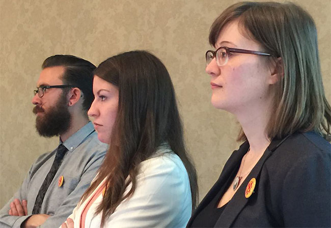 Organizer Katherine Lapointe (right) and Associate Members Kayla Perry and Andrew Meade won unanimous