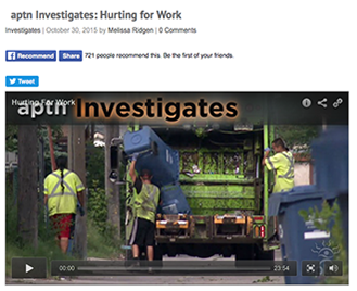 Joint winners of the CWA Canada / CAJ Award for Labour Reporting were Melissa Ridgen of APTN Investigates for Hurting for Work and Nick Purdon and Leonardo Palleja of CBC’s The National for Up Close: Prison Guards.