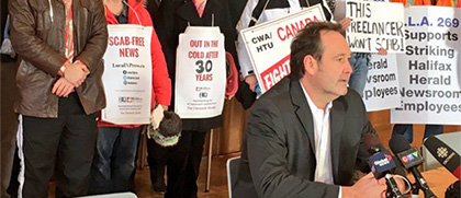 2016.01.12 Almost a third of newsroom jobs and the survival of quality journalism are at stake at the Halifax Chronicle Herald, where management has served notice that it plans to lock out staff at 12:01 a.m. on Jan. 23.